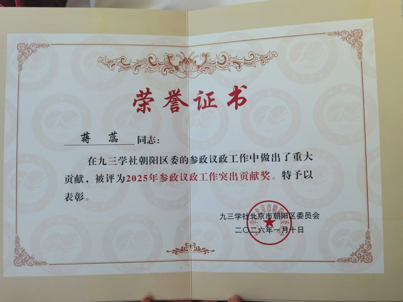 社员蒋蕊荣获“2025年参政议政突出贡献奖”。