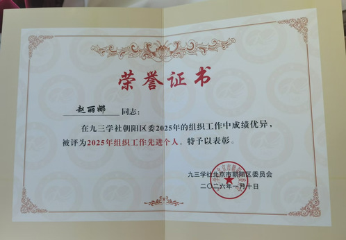 社员赵丽娜荣获“2025年组织工作先进个人”。